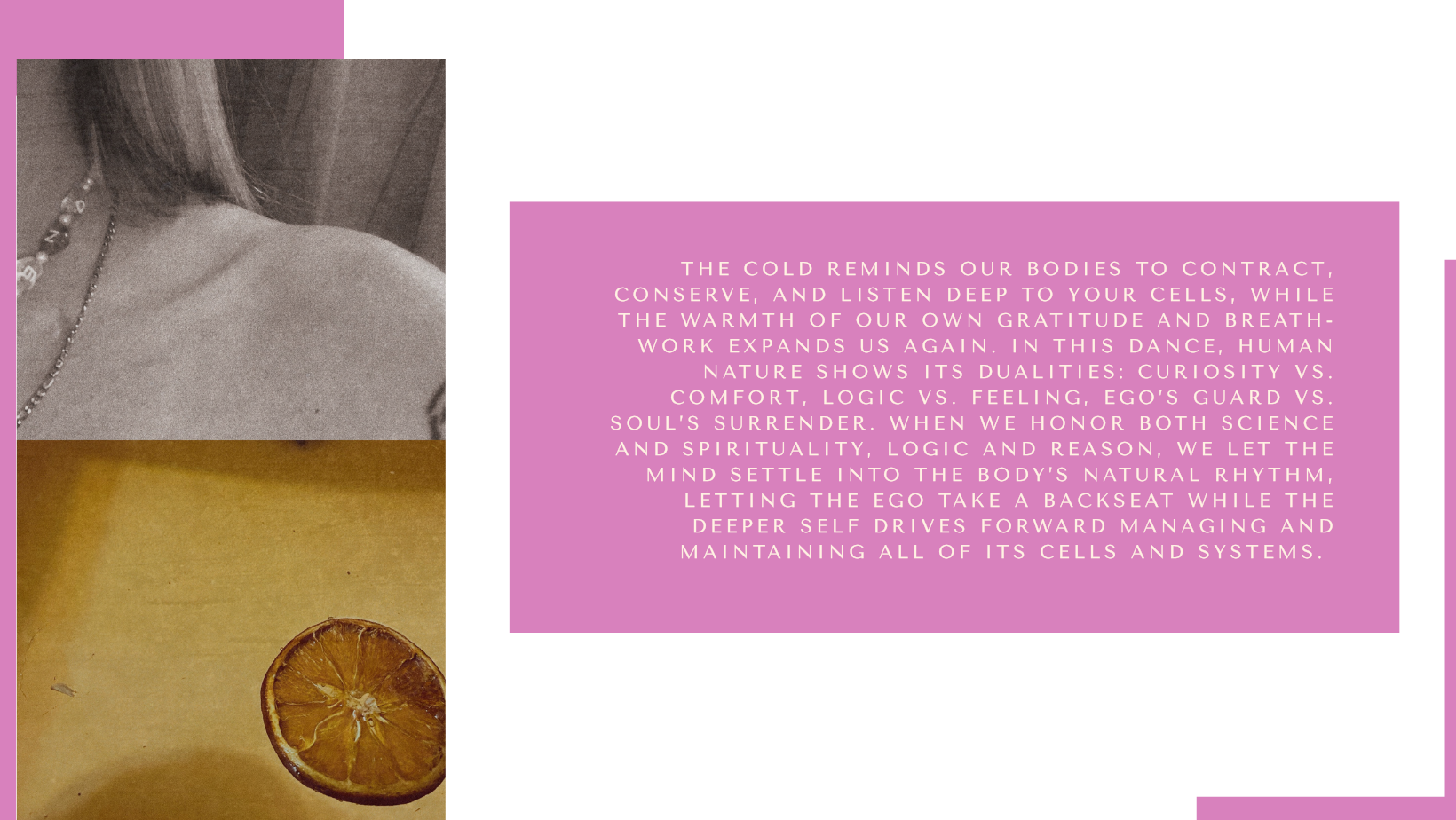 Connecting mind to matter, enabling the processing of stored information, allowing the shift into the parasympathetic nervous system where our cellular health can charge and your brain rest